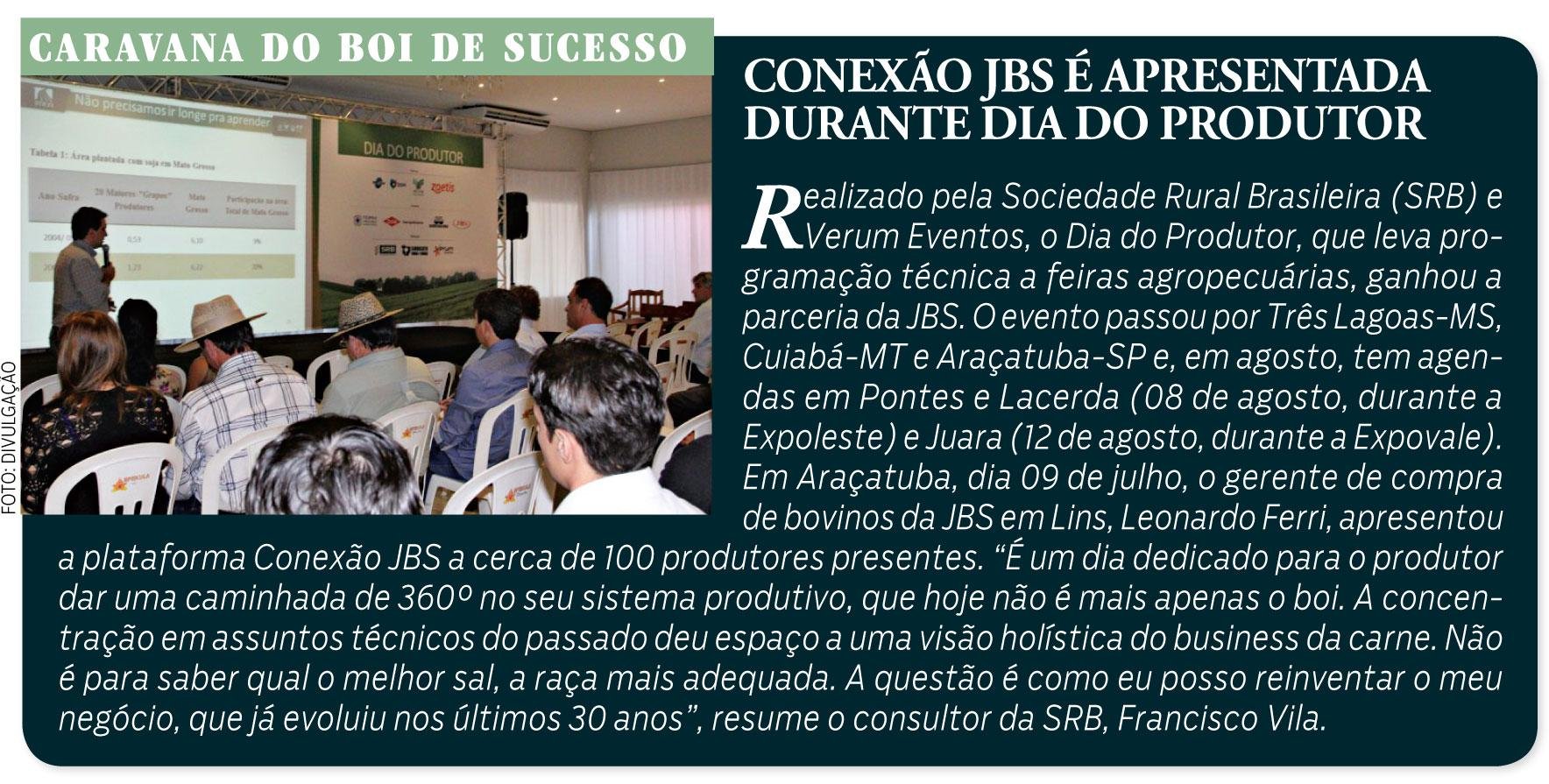 Deste modo a cadeia produtiva do MS começa a provar que começou no campo a revolução para transformar a carne brasileira em produto de alta qualidade, afastando a hipótese de que um movimento deste seria utópico em curto prazo. “Só se sustenta valor com entrega constante de valor. Pelo histórico de boi capão, o sul-mato-grossense acolheu a missão de levar uma carne melhor ao consumidor. Este produtor percebeu que a pecuária depende da satisfação e recompra da ponta final da cadeia. A indústria é sua parceira, responsável pelo escoamento da produção”, destaca o diretor de originação da JBS para o MS e SP, Eduardo Pedroso. O próximo passo é estender o protocolo Juntos por um Boi de Sucesso a todas as unidades no MS até o fim de 2015. “Queremos bonificar cada vez mais o pecuarista de acordo com a meritocracia da entrega. A penalização é educativa e mostra que carne de baixa qualidade não tem versatilidade para acessar mercados exigentes e de melhor remuneração”, esclarece.