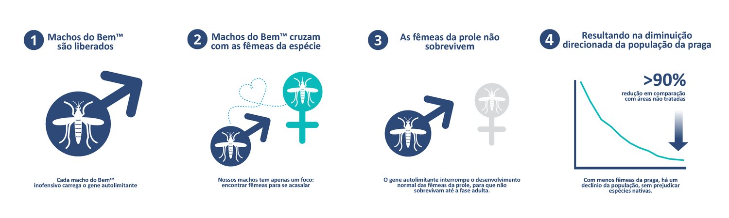 As fêmeas descendentes desse cruzamento não chegam à fase adulta, não se reproduzindo e ajudando a reduzir o número de mosquitos e, consequentemente, os casos de contaminação.